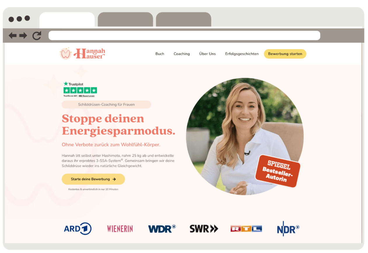 Wir sind Deutschlands Marktführer im Bereich Ernährungs- und Gesundheitscoaching spezialisiert auf Frauen mit Schilddrüsenunterfunktion und Hashimoto.